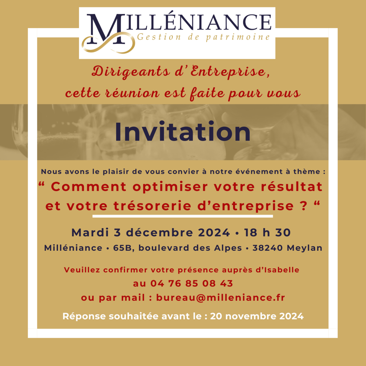 COMMENT OPTIMISER VOTRE RÉSULTAT ET VOTRE TRÉSORERIE D'ENTREPRISE ? À MEYLAN LE 3 DÉCEMBRE 2024
